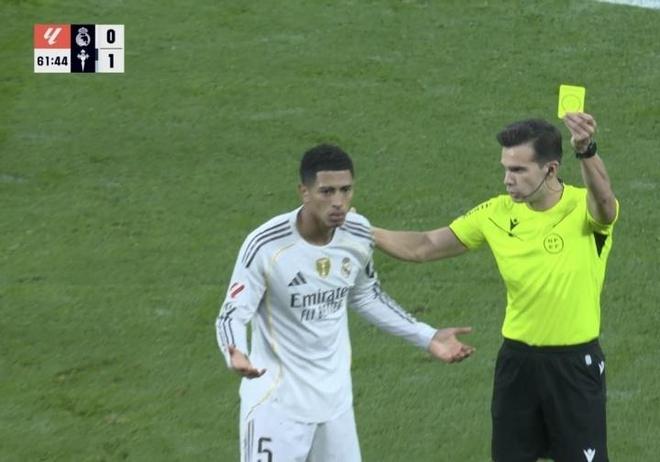 比赛的第60分钟,贝林厄姆被伊格莱西亚斯肘击,眉骨被打破,随即下场止血。直到第62分钟,贝林厄姆才回到场上。然而,主裁判却向贝林厄姆出示了黄牌,这让贝林厄姆非常不满。